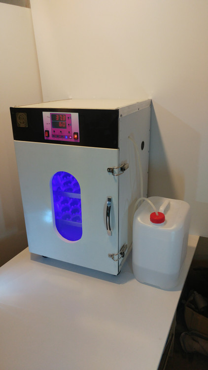 سیستم تامین کننده رطوبت در دستگاه جوجه کشی طاووس R84 از نوع فول اتوماتیک می باشد که مورد استفاده قرار گرفته است . این سیستم متشکل از یک پمپ آب ، فلوتر الکترونیکی و ظرف تفلون المنت دار می باشد .